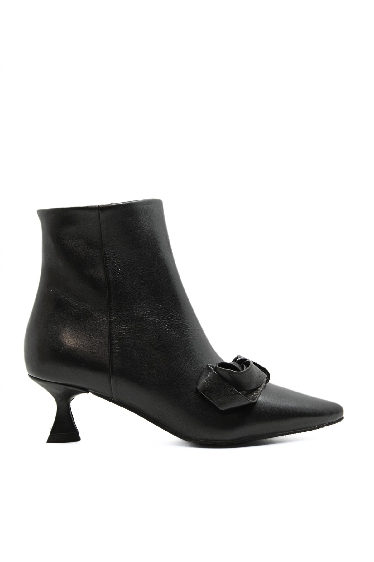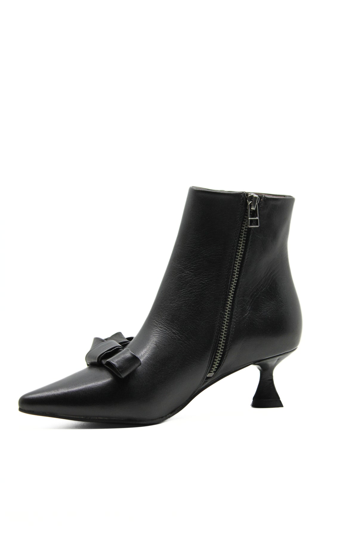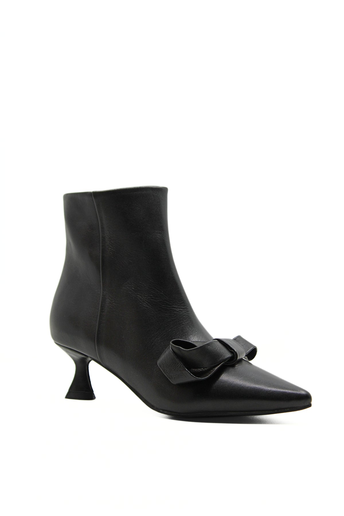 Tronchetto in nappa nero con tacco a rocchetto sagomato alto 5,5cm. Con zip interna laterale. Fiocco decorativo sul davanti. Pianta comoda con suola in gomma antiscivolo. Per un look esclusivo senza rinunciare alla comodità