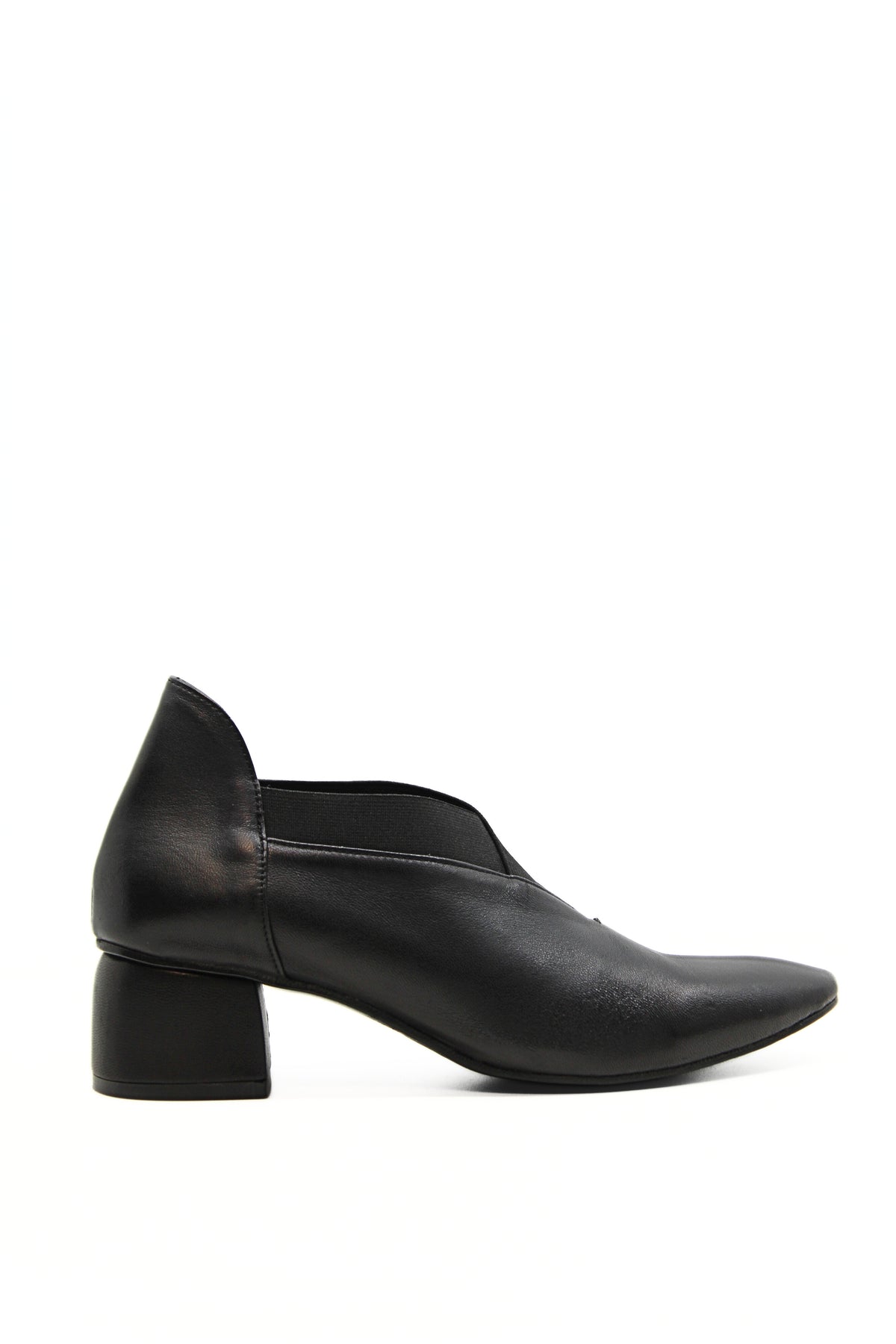 Scarpa di altissima manifattura italiana, in pelle nera e con tacco alto 5,5cm. Punta leggermente allungata. La morbidezza e la flessibilità sono il risultato di una lavorazione unica al mondo: la tomaia viene lavorata a rovescio e poi cucita alla fodera così da formare un sacchetto, per poi essere rovesciato. Ogni singolo paio di scarpe è unico e ogni piccola imperfezione racconta la personalità del prodotto e proprio per questo merita di essere valorizzata.