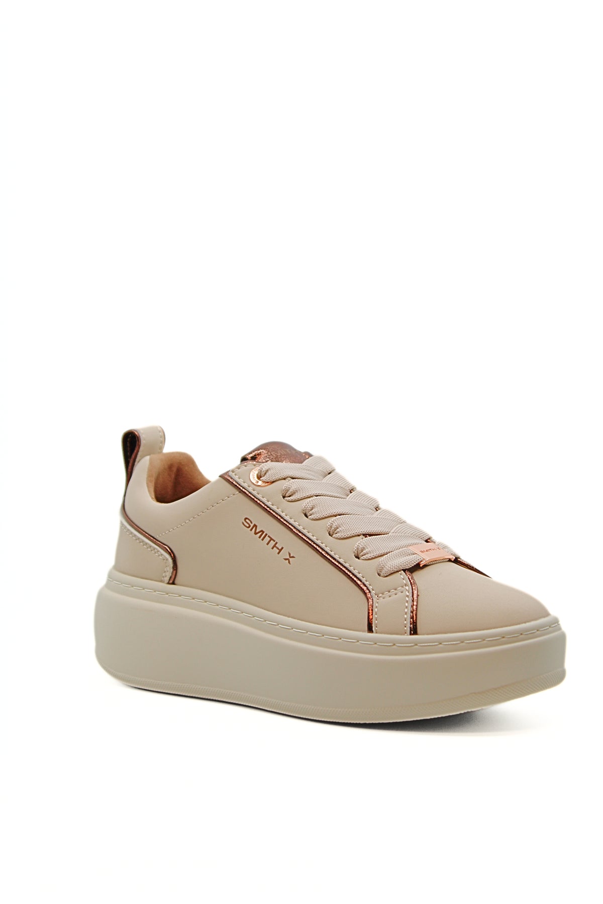 Pulita, lineare, intramontabile. STONE è la sneaker minimal firmata Smith X che unisce spirito urbano e gusto raffinato in un design unisex pensato per durare nel tempo, in questa variante in avorio scuro con dettagli in laminato bronzo. Altezza zeppa 5cm con soletto estraibile