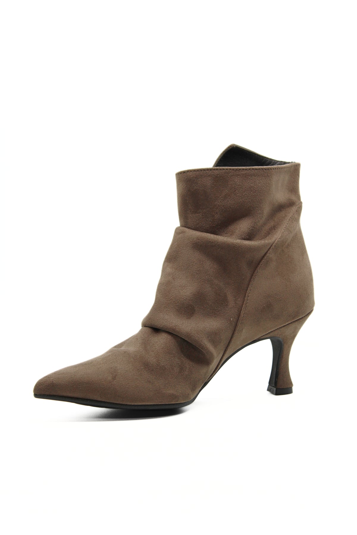 Tronchetto in pelle (interno) e camoscio (esterno) morbidissimo, tacco a rocchetto alto 7cm. La tomaia è caratterizzata da pieghe morbide con zip laterale esterna. Pianta comoda. Per un look esclusivo senza rinunciare alla comodità