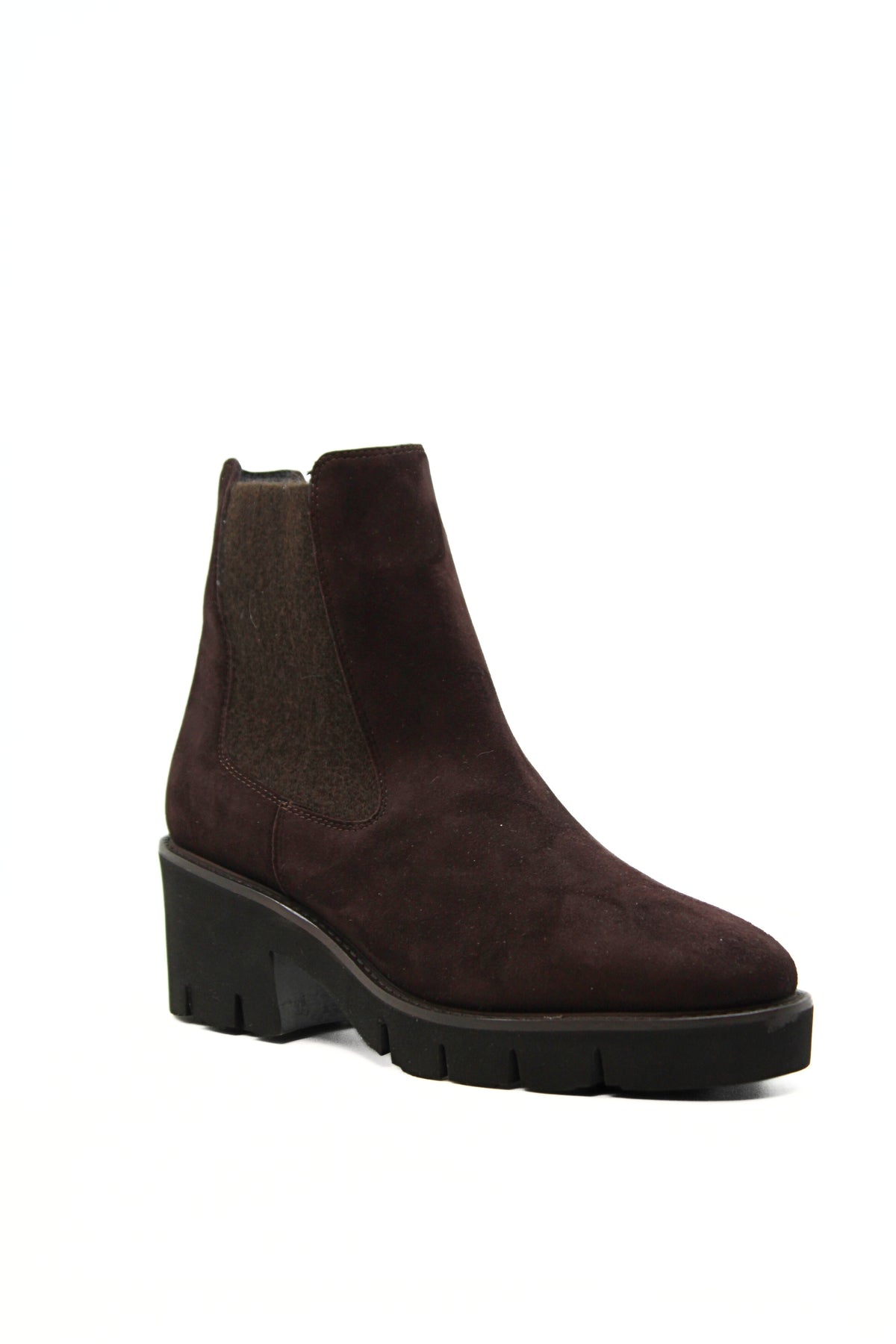 Tronchetto in pelle e camoscio testa di moro con tacco/zeppa alto 6cm. Fondo in gomma leggerissimo e flessibile. Elasticone laterale esterno, in lana, e zip interna laterale. E' la scarpa ideale se sei alla ricerca del massimo comfort, perfetta anche per chi ha problemi di pianta larga o alluce valgo.
