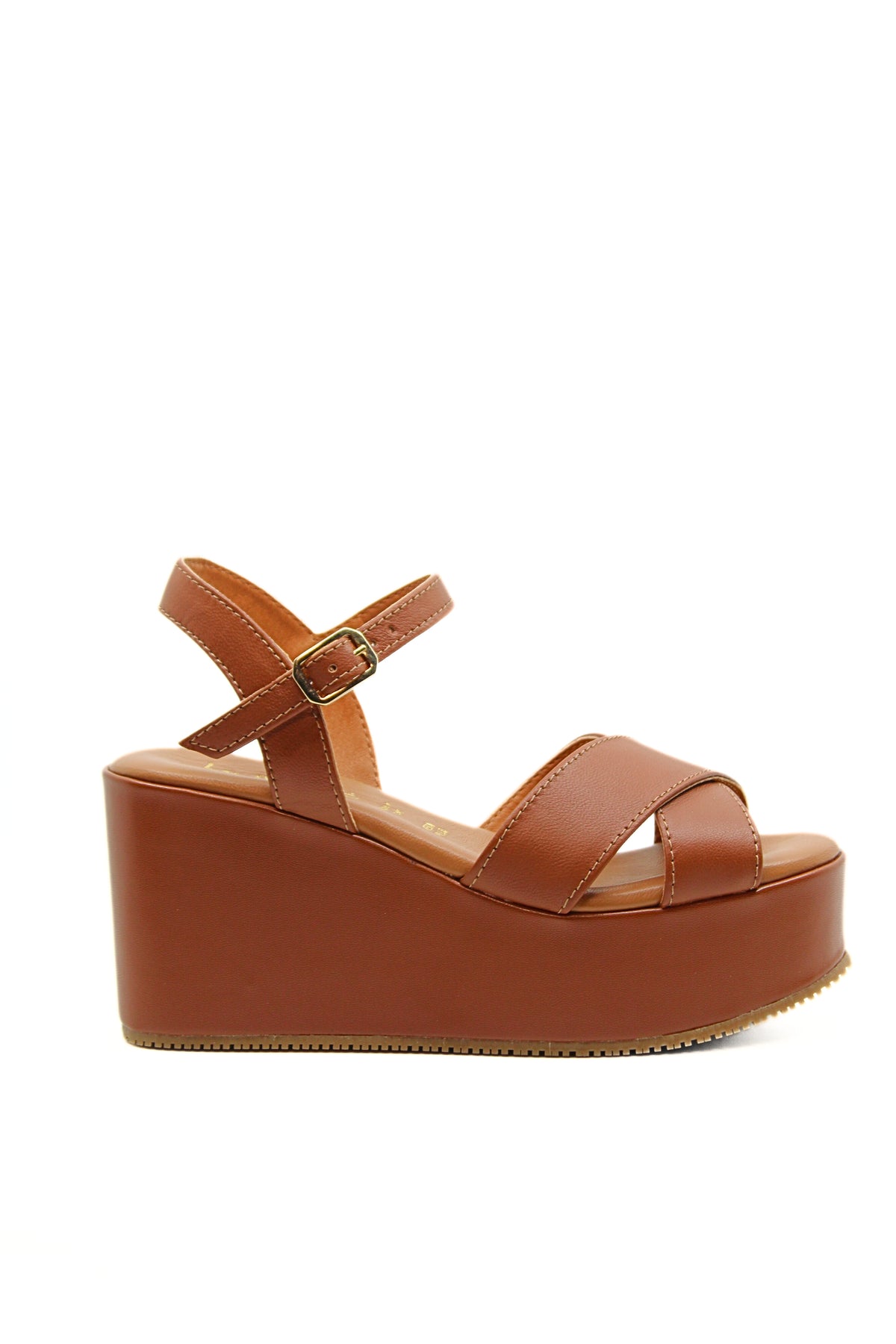 Zeppa in pelle cuoio con fasce incrociate sul davanti e braccialetto regolabile alla caviglia. Altezza zeppa 9cm e plateau sul davanti di 4,5cm. La pianta è caratterizzata da un morbidissimo plantare in memory per un comfort unico. Per un look esclusivo senza rinunciare alla comodità.
